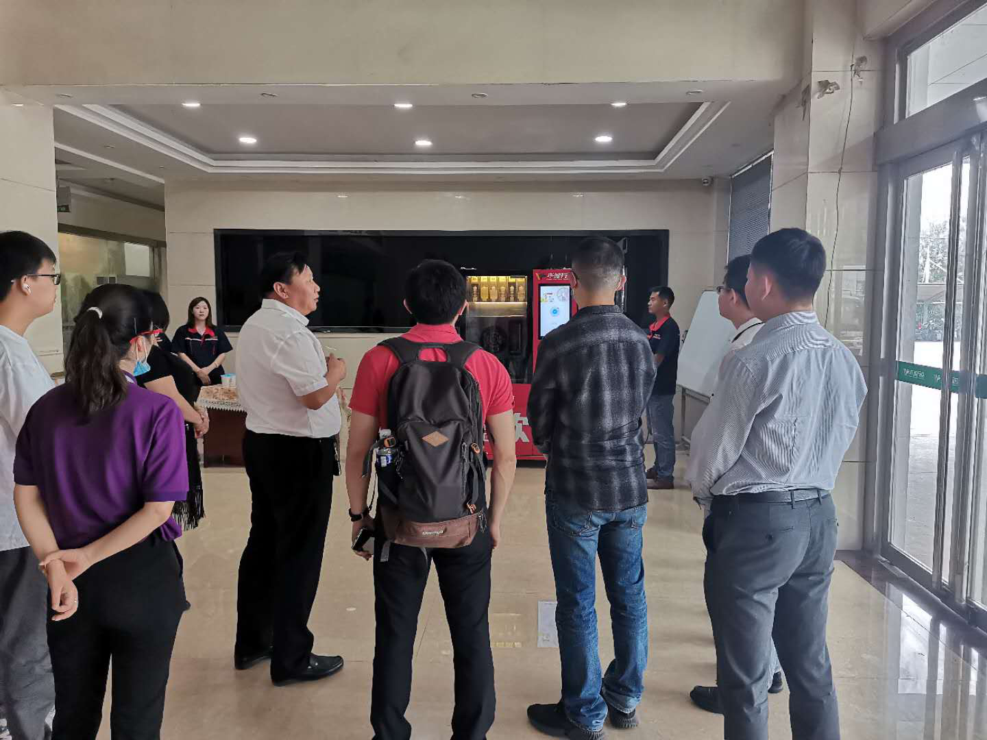 沈董在公司办公楼一楼大厅,同清研基地团队成员进行了分享与沟通。并就公司的重要项目—— 五谷养生鲜汤智能售卖机的制作原理、生产工艺、市场应用等方面进行了详细的讲解,团队成员不时就五谷养生鲜汤智能售卖机的有关问题提出自己的建议。营销中心的员工现场操作五谷养生鲜汤智能售卖机的制作过程,并送予每位清研团队嘉宾品尝,清研团队就五谷养生鲜汤智能售卖机的设计原理及工艺提高同沈董深入交换意见。随后,清研团队到公司的展厅参观,了解公司的主要产品和公司发展历史,并到装配车间查看五谷养生鲜汤智能售卖机的组装和生产情况。